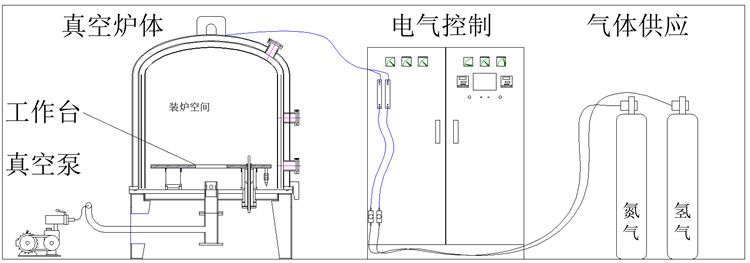 全套設備由1、真空爐體;2、電氣控制系統;3、真空獲得及調節(jié)系統;4、供氣調節(jié)系統等幾大部分組成。