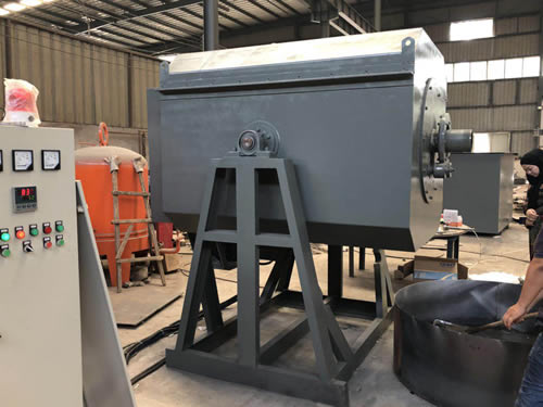 RG2系列滾筒式電阻爐外殼由鋼板和型鋼制成長方型爐體。爐襯采用超輕質(zhì)高強(qiáng)度0.6g/cm3微珠節(jié)能耐火磚,保溫采用全高純鋁硅酸鋁纖維,屬于典型超節(jié)能結(jié)構(gòu)。電阻絲采用0Cr21Al6Nb高電阻合金絲,繞成螺旋狀安裝在滾筒爐膛的擱絲磚上(節(jié)能爐型請參閱后面說明)。滾筒爐罐采用1Cr18Ni9Ti不銹鋼,或采用CrMnN耐熱鋼鑄件制成圓柱型,爐罐兩端由軸承支座支在爐體外,并采用變頻調(diào)速電動(dòng)機(jī)帶減速機(jī)驅(qū)動(dòng),使?fàn)t罐緩慢旋轉(zhuǎn),工件隨滾筒爐罐旋轉(zhuǎn)使之受熱均勻,這樣工件互相之間無復(fù)蓋現(xiàn)象,熱處理后色澤一致,機(jī)械性能相同。爐罐一端為進(jìn)、出料口,另一端可根據(jù)需要加入保護(hù)氣氛或滴入保護(hù)介質(zhì)。進(jìn)料時(shí),通過電動(dòng)傾轉(zhuǎn)機(jī)構(gòu),使?jié)L筒爐向上傾斜,使進(jìn)料口向上20°,便于進(jìn)料,出料時(shí)向下傾斜40°,即可倒出爐罐內(nèi)工件。